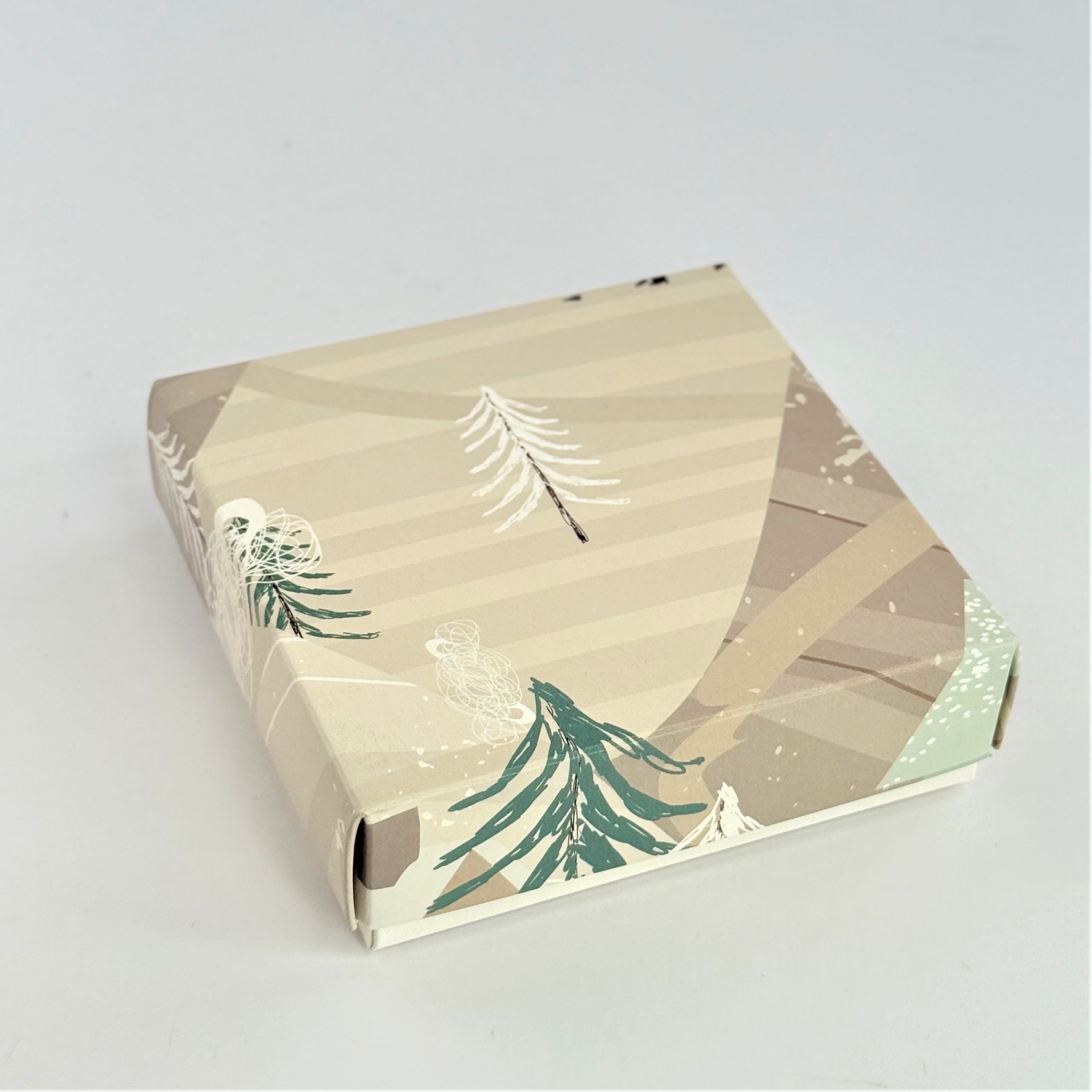 Коробка «Снежные горы» 10*10*3 см (белое дно)