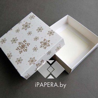 Коробка «Снежинки» 10*10*3 см (белое дно)