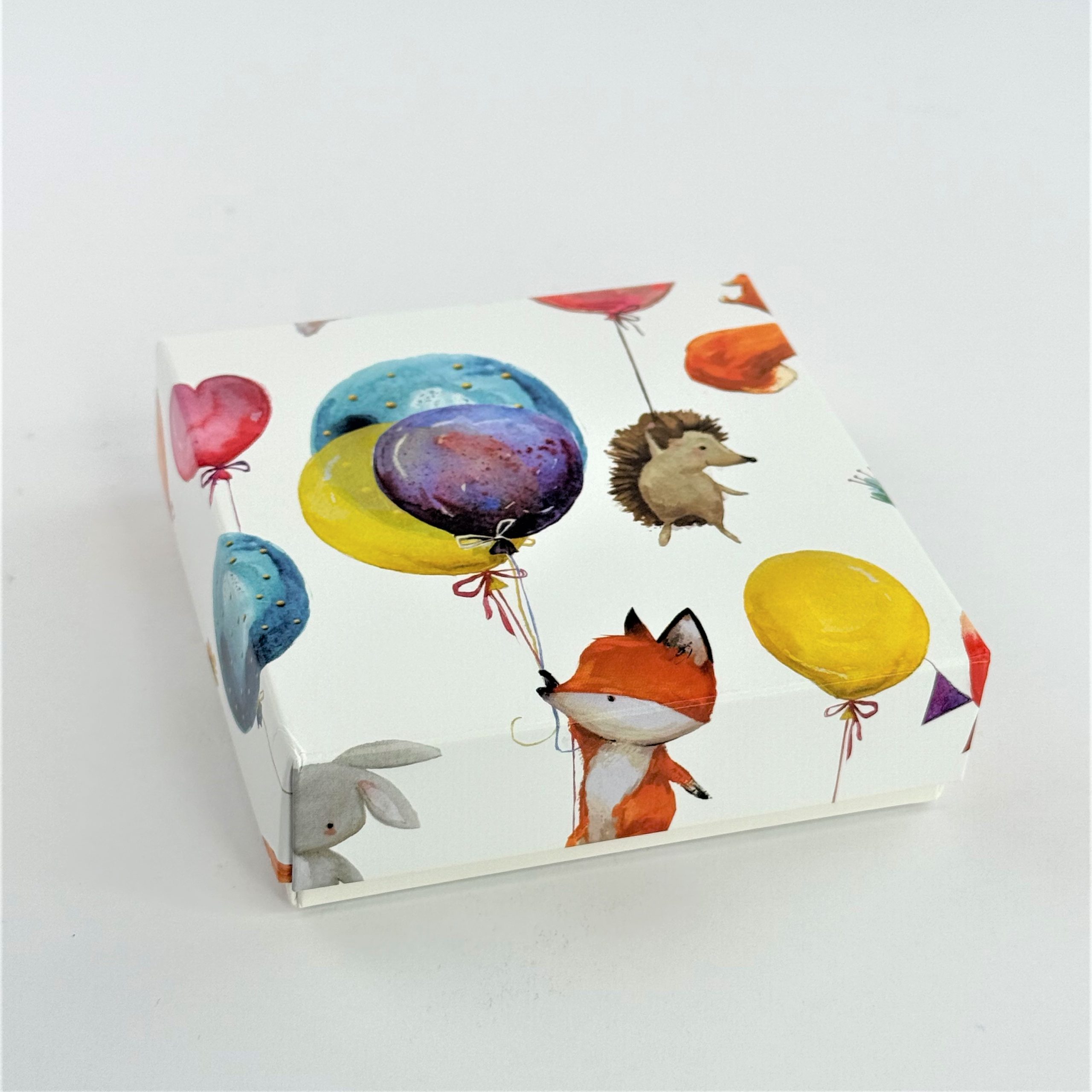 Коробка «Зверята на шариках» 10*10*3 см (белое дно)