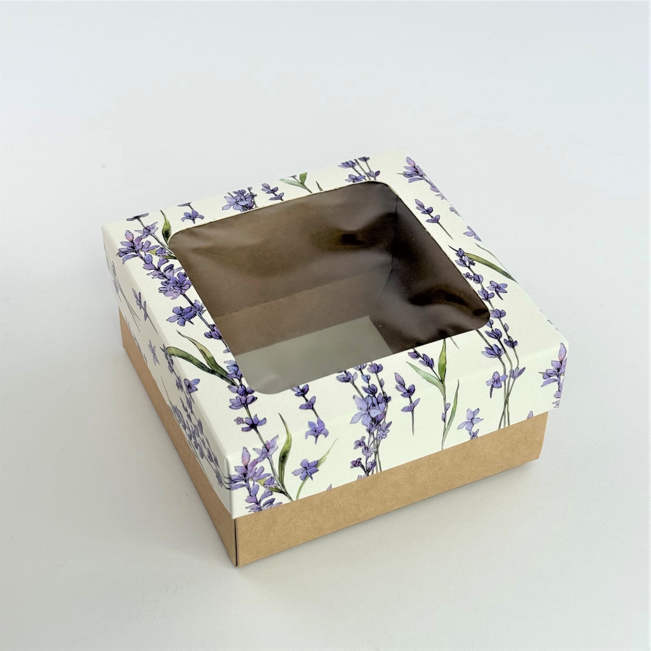 Коробка «Лаванда с квадратным окном» 10*10*5 см (крафт дно)