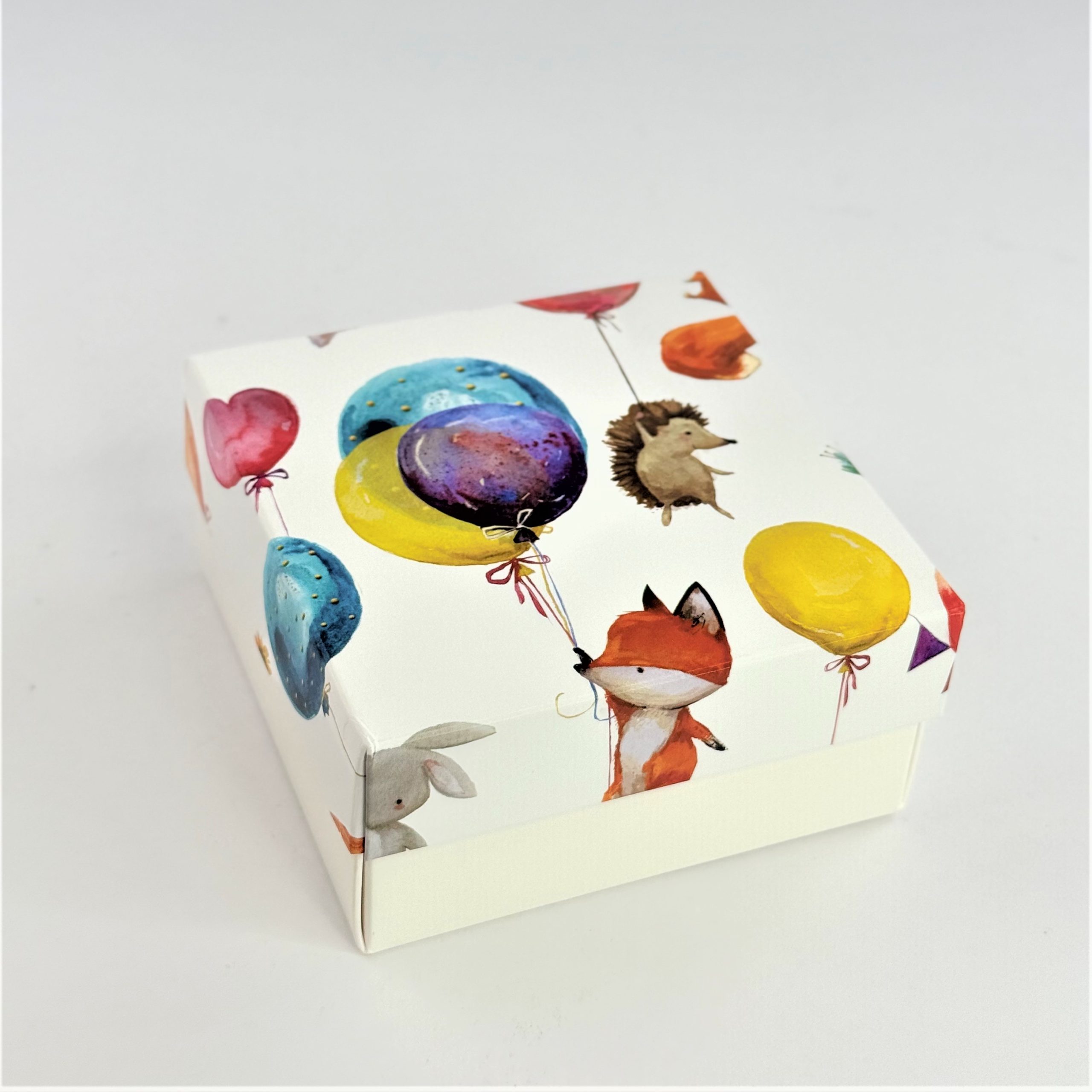 Коробка «Зверята на шариках» 10*10*5 см (белое дно)