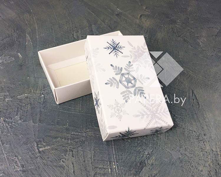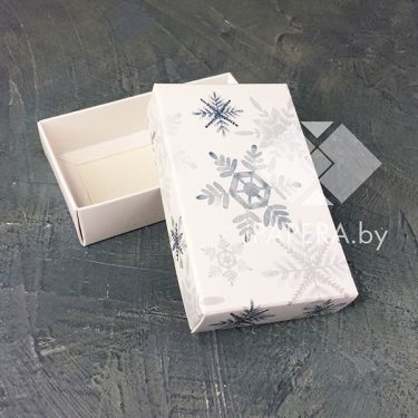 Коробка «Акварельные снежинки» 10*6*2,5 см (белое дно)