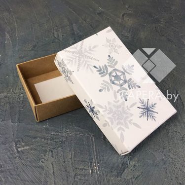 Коробка «Акварельные снежинки» 10*6*2,5 см (крафт дно)
