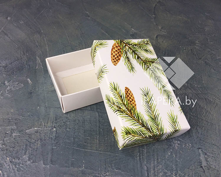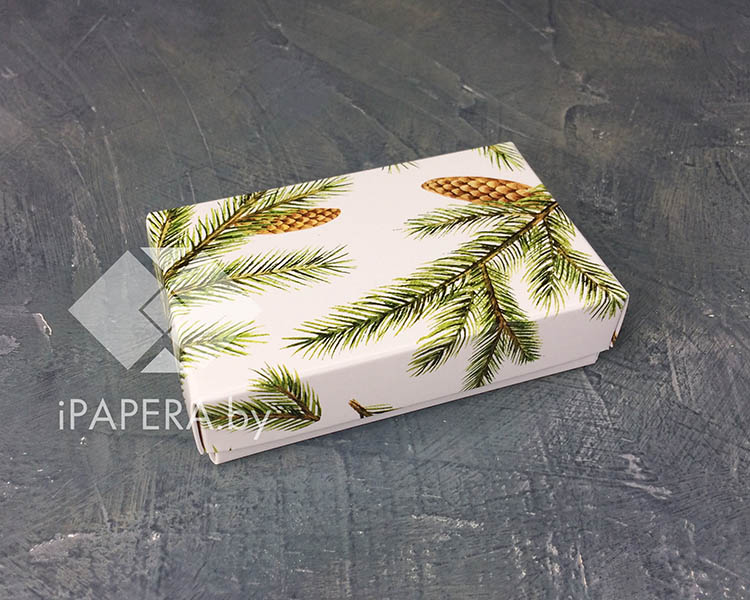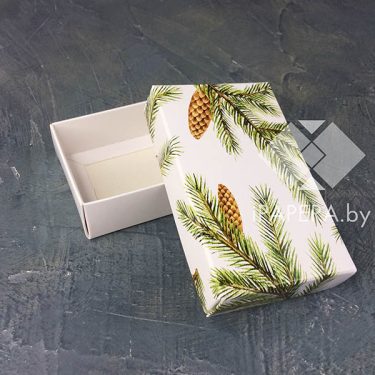 Коробка «Еловые ветки» 10*6*2,5 см (белое дно)