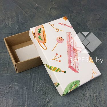 Тип: крышка коробки изготовлена из мелованного картона плотностью 255г/м2, дно из крафт картона 270г/м2, требуется сборка.