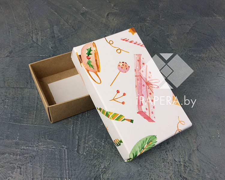 Коробка «Новогоднее чаепитие» 10*6*2,5 см (крафт дно)