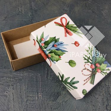 Тип: крышка коробки изготовлена из мелованного картона плотностью 255г/м2, дно из крафт картона 270г/м2, требуется сборка.