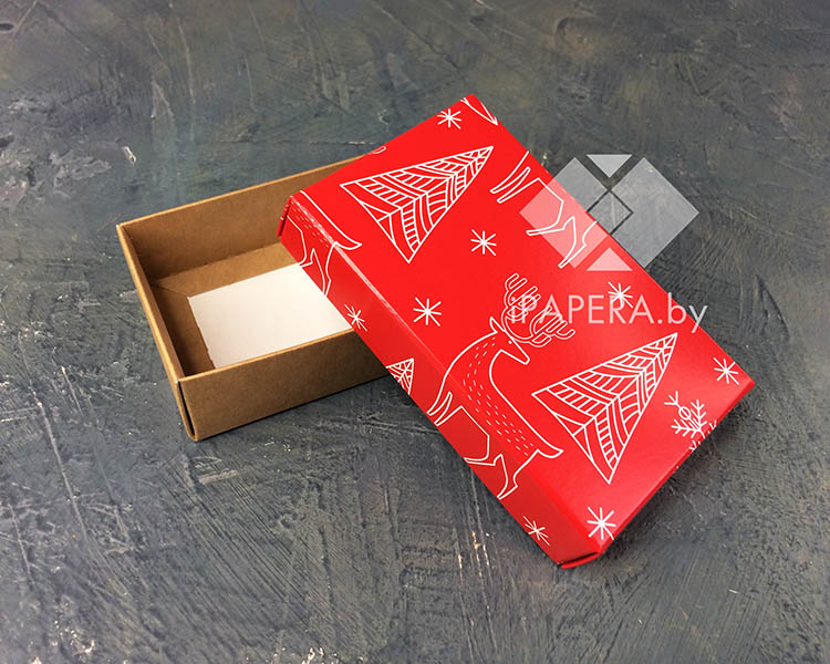 Коробка «Олени» 10*6*2,5 см (крафт дно)
