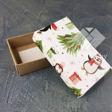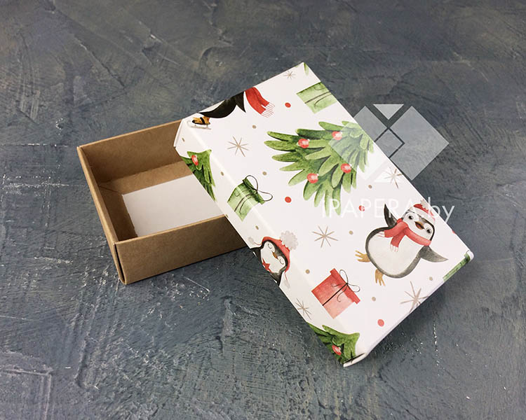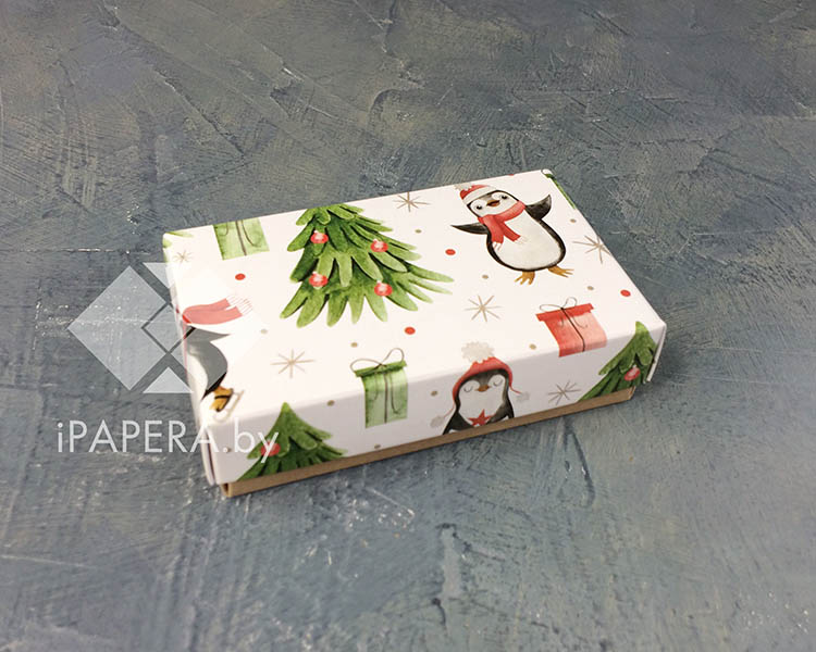 Коробка «Пингвины» 10*6*2,5 см (крафт дно)