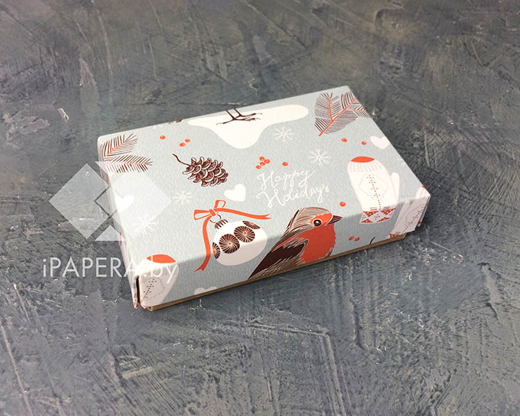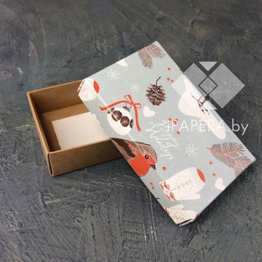 Коробка «Снегири» 10*6*2,5 см (крафт дно)