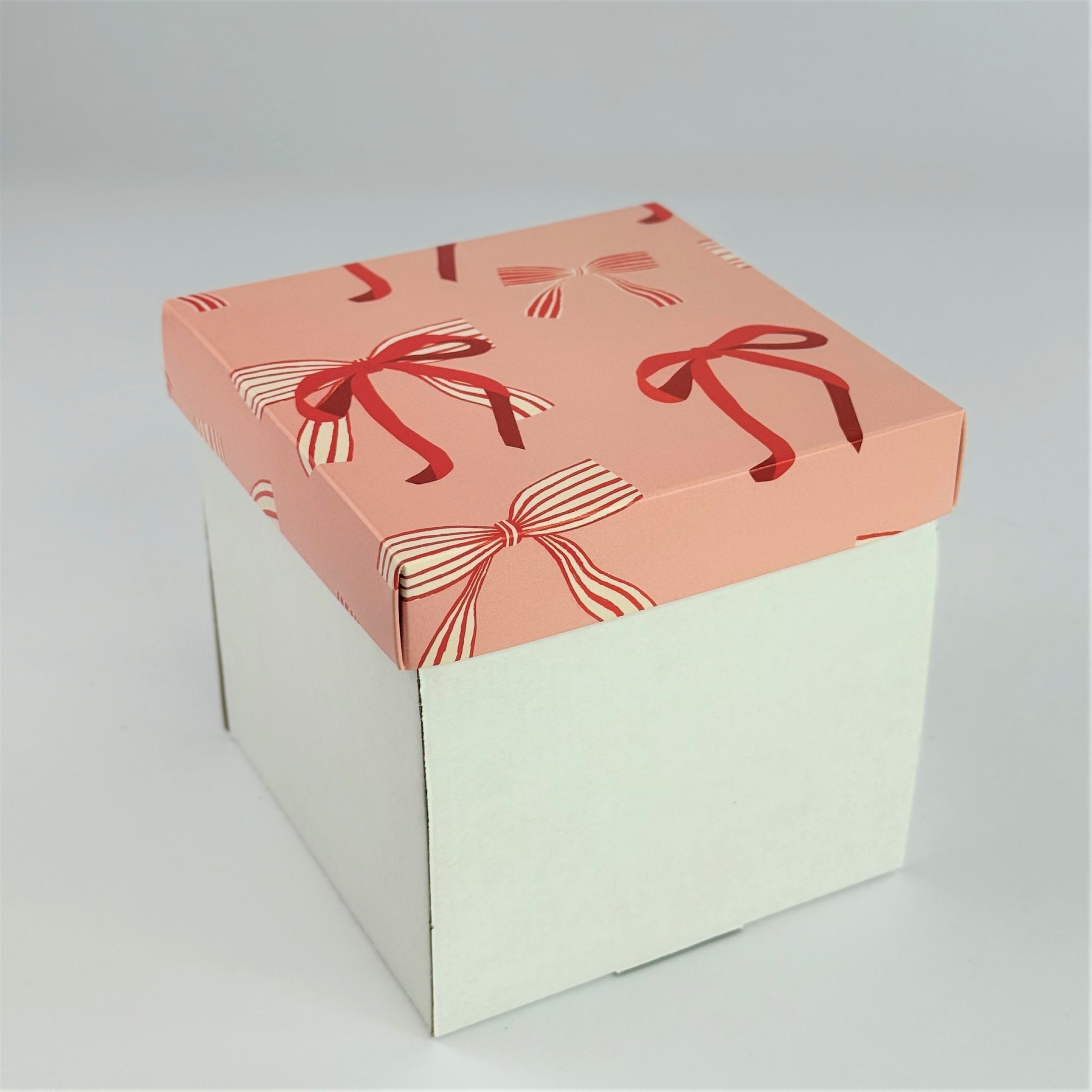 Крафт-коробка «Бантики» 12*12*12 см (белое дно из микрогофры)