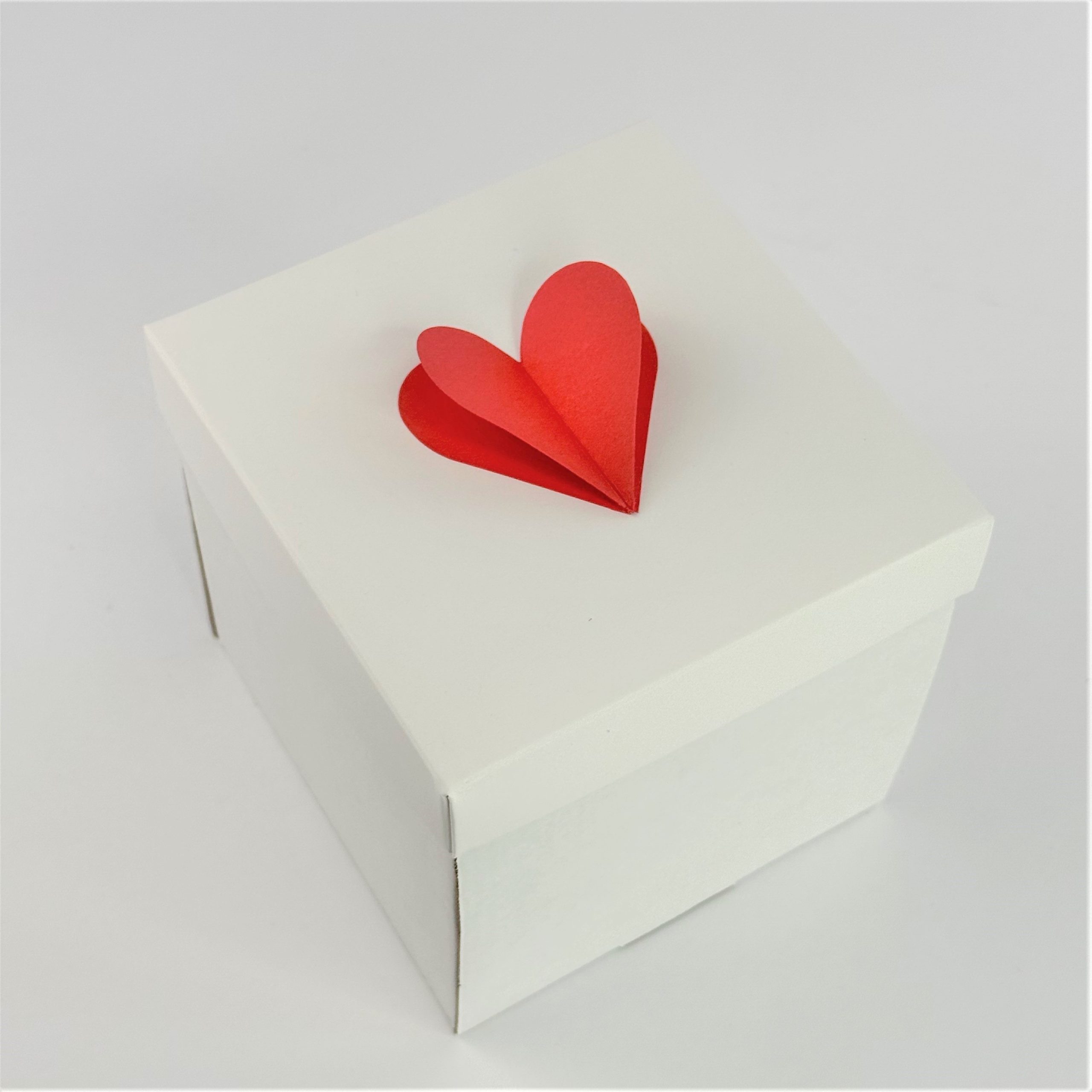 Крафт-коробка с красным сердцем 12*12*12 см (белое дно из микрогофры)