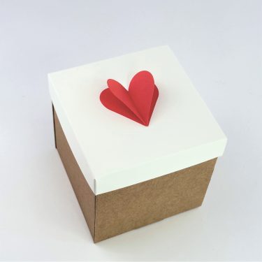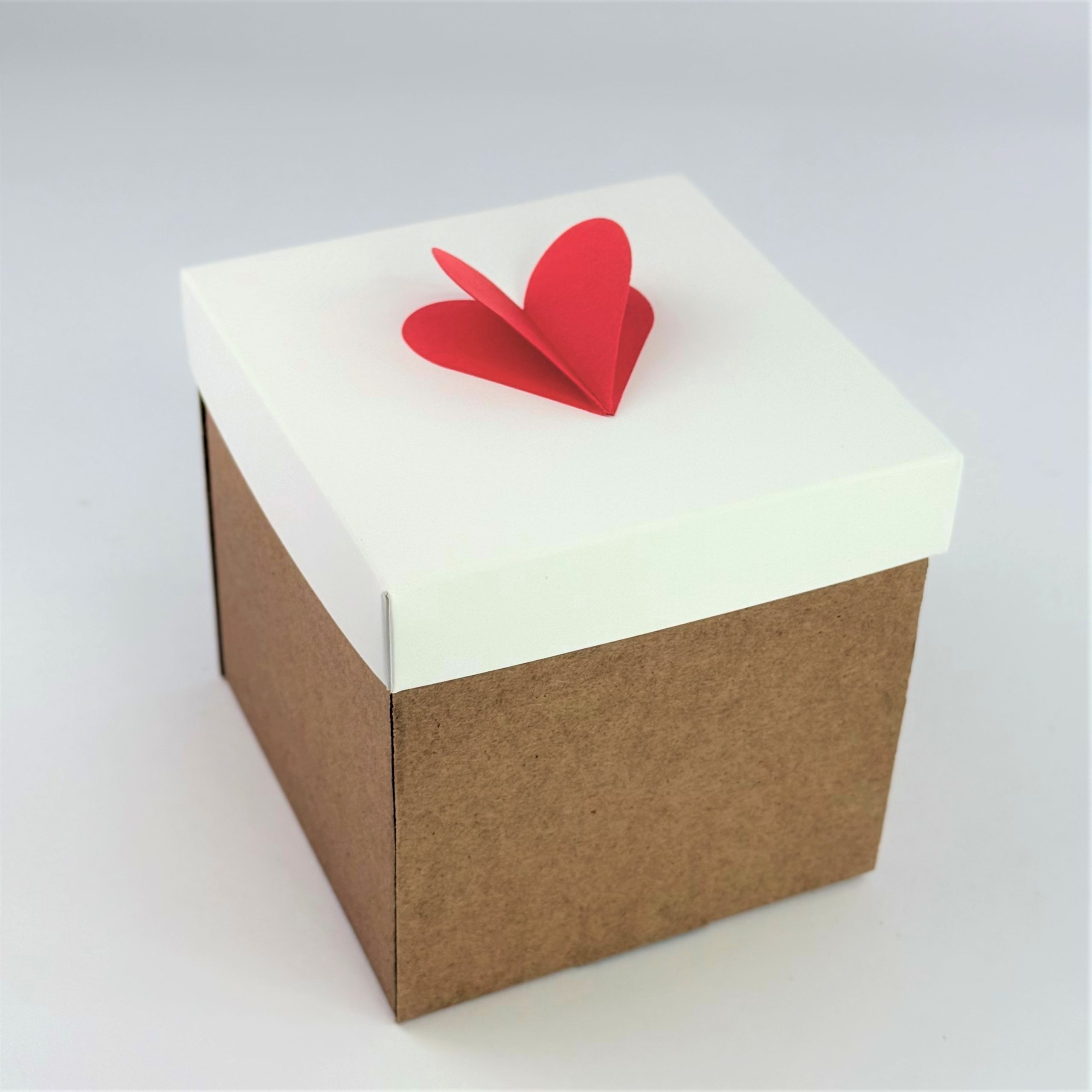 Крафт-коробка с красным сердцем 12*12*12 см (крафт дно из микрогофры)