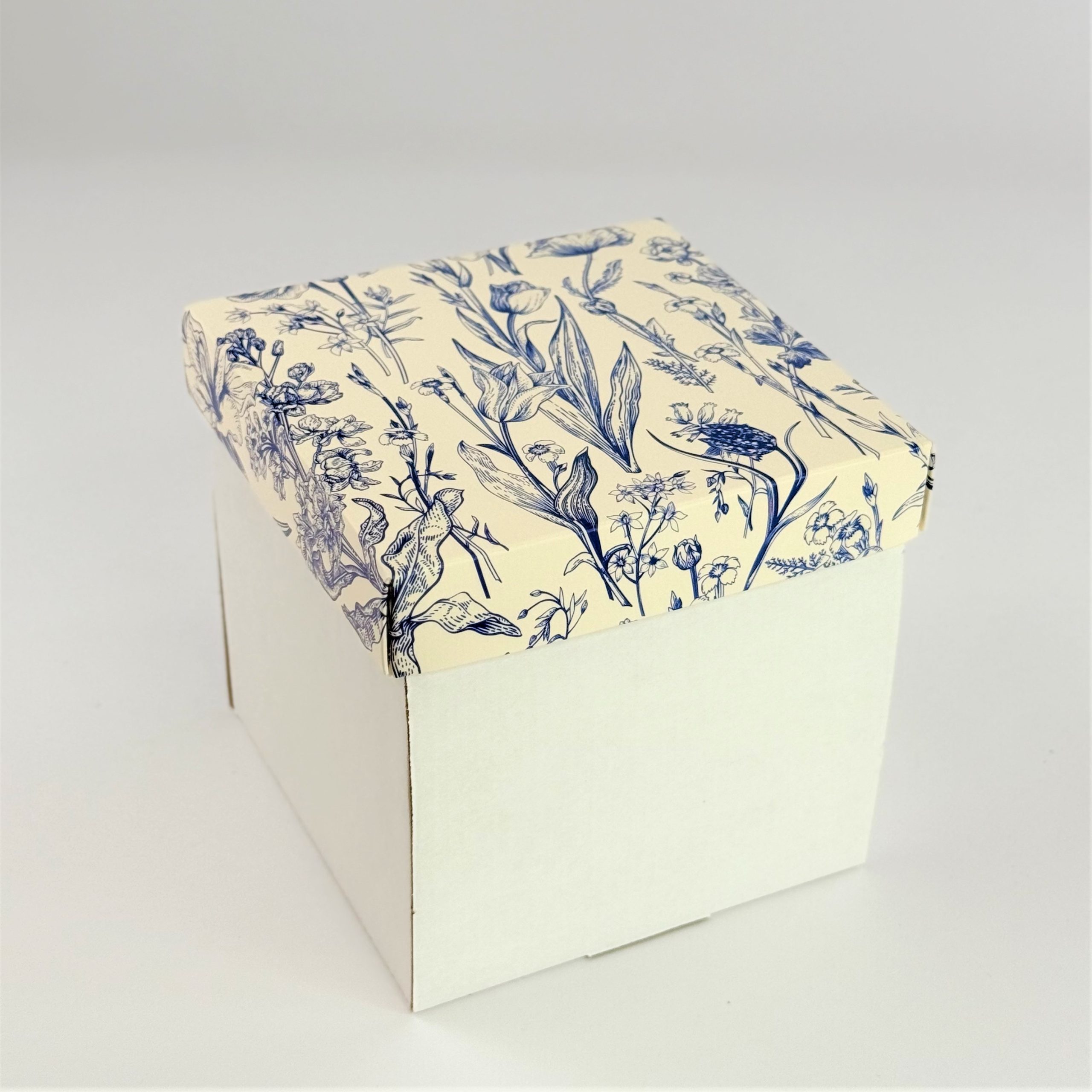 Крафт-коробка «Весенние цветы» 12*12*12 см (белое дно из микрогофры)