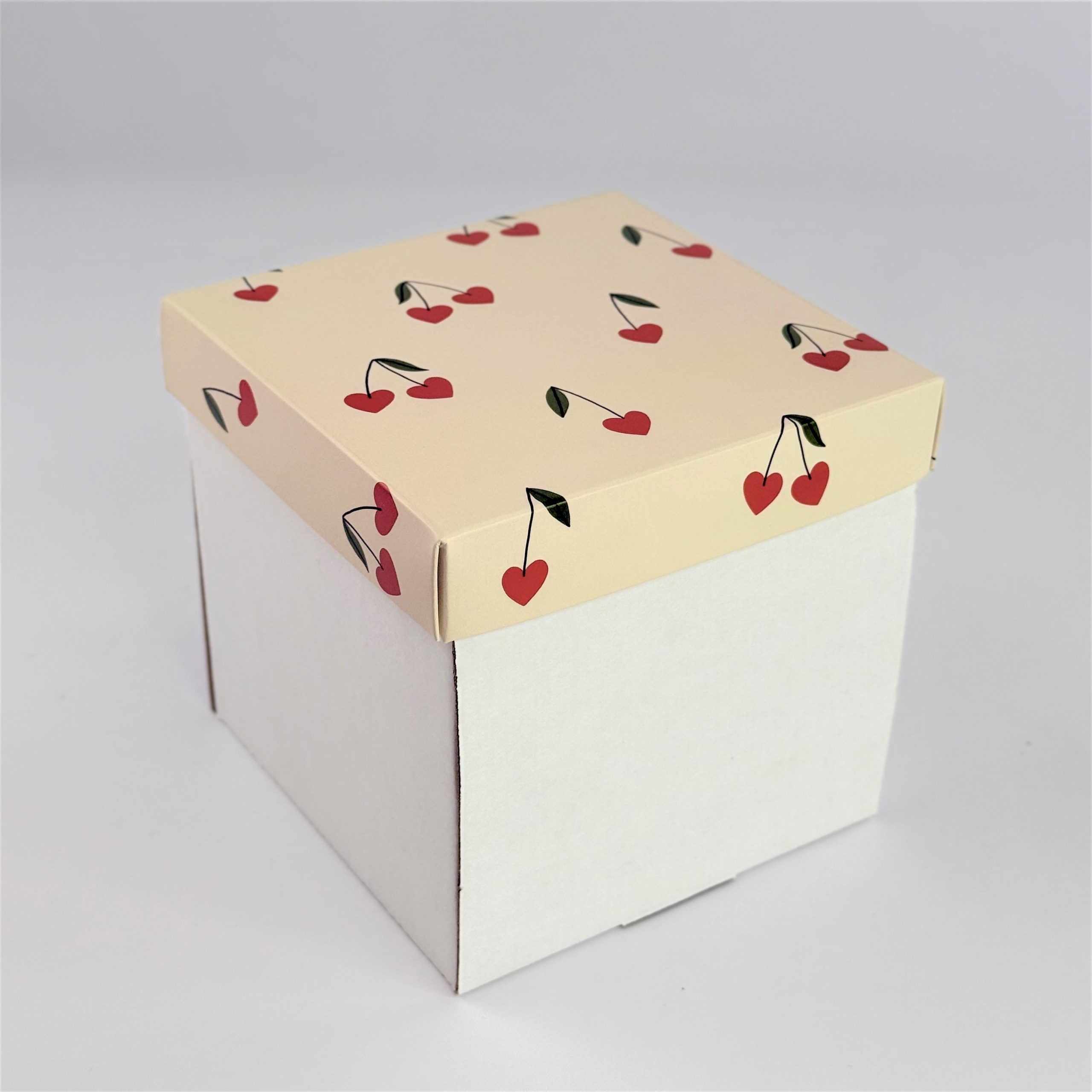 Крафт-коробка «Вишни» 12*12*12 см (белое дно из микрогофры)