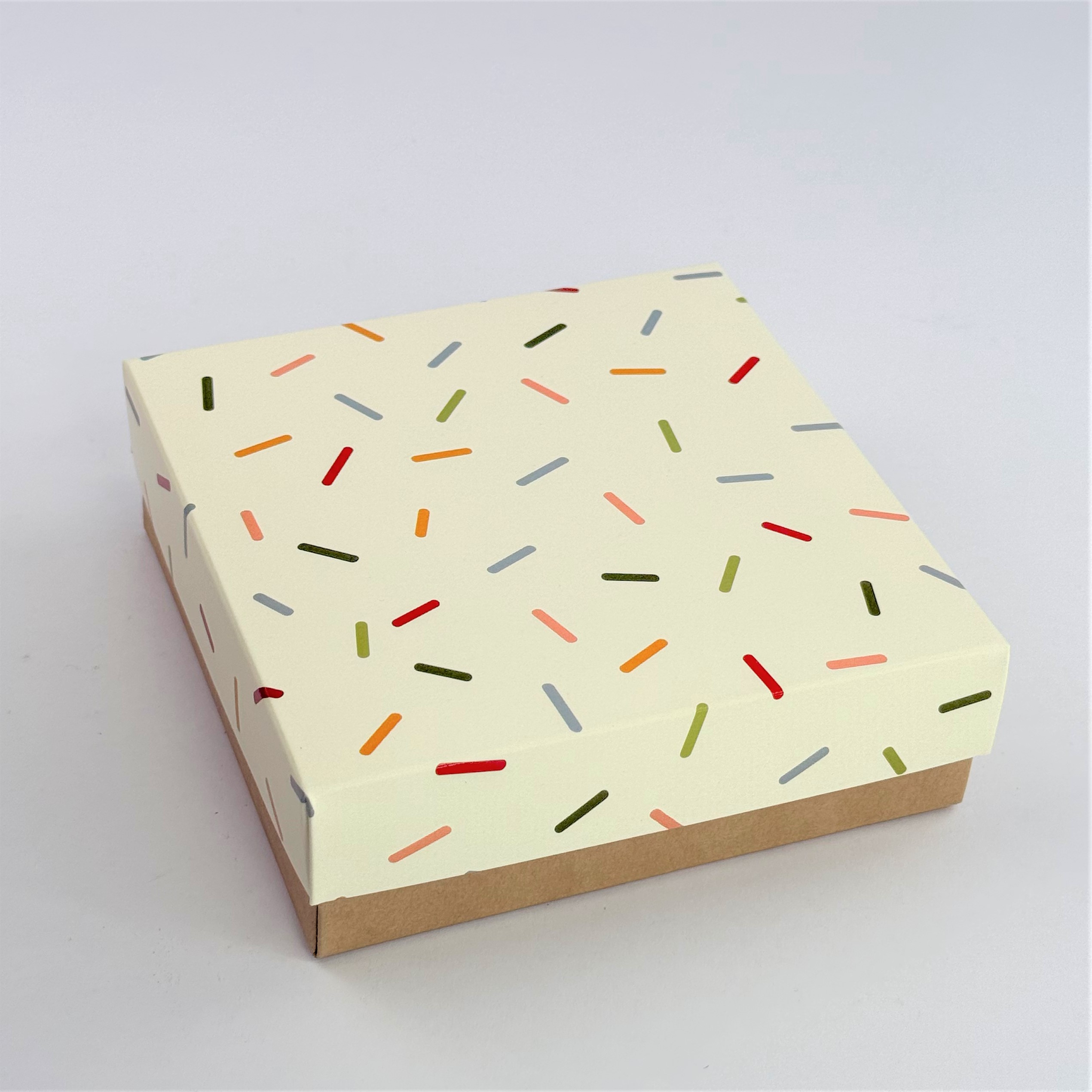 Коробка «Конфетти» 12*12*4 см (крафт дно)