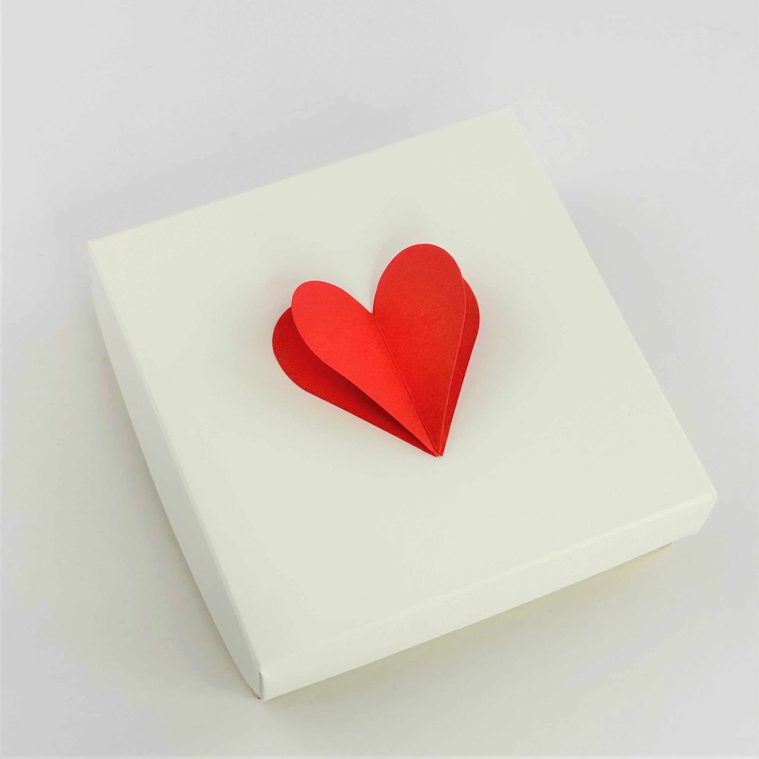Коробка с красным сердцем 15*15*4 см (крафт дно)