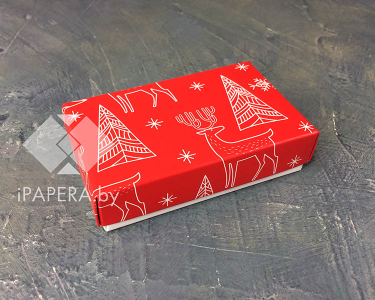 Коробка «Олени» 15*6*3 см с фальшбортом (белое дно)