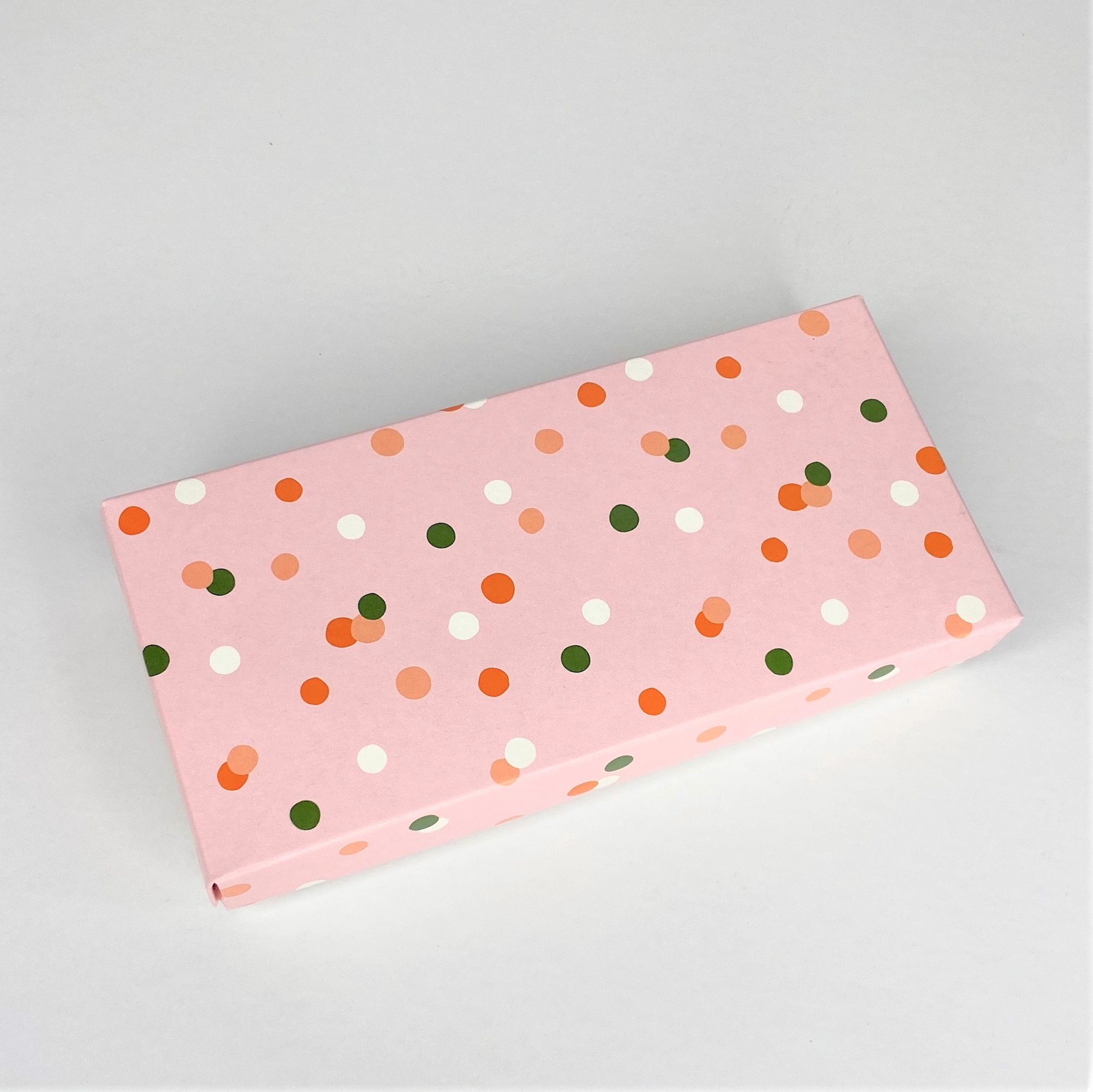 Коробка «Разноцветный горошек» 15*6*3 см с фальшбортом (белое дно)