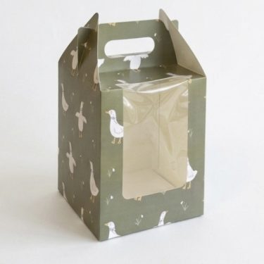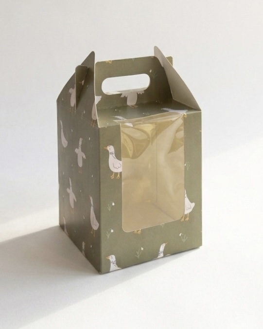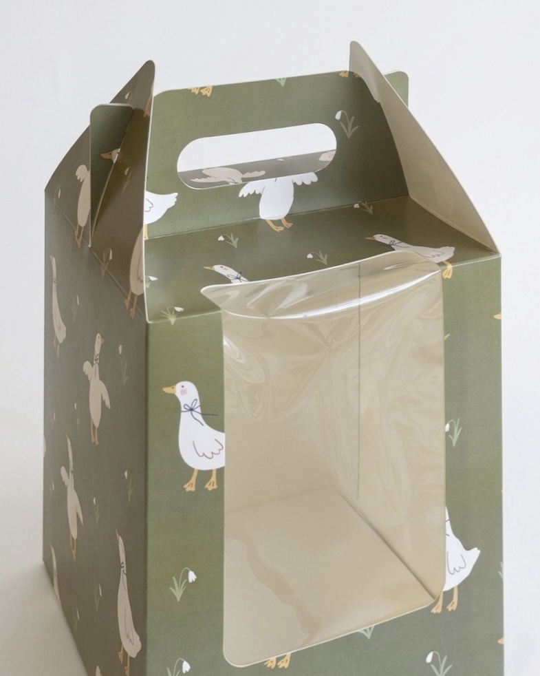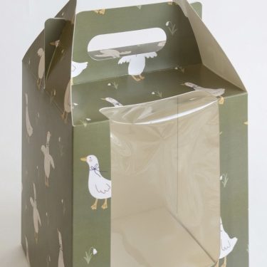 Коробка с ручкой и окном «Гуси» 16*16*20 см (для кулича)