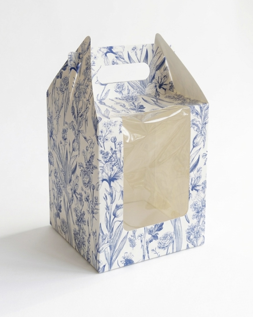 Коробка с ручкой и окном «Весенние цветы» 16*16*20 см (для кулича)