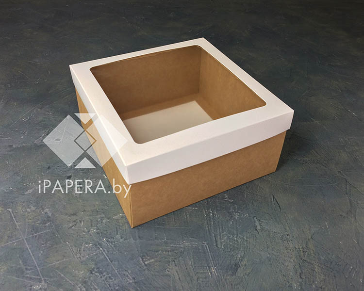 Коробка «Белая с окном» 20*20*10 см (крафт дно)