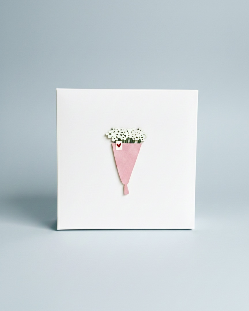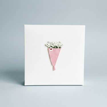 Коробка с деревянным элементом «Букет» 20*20*10 см (белое дно)