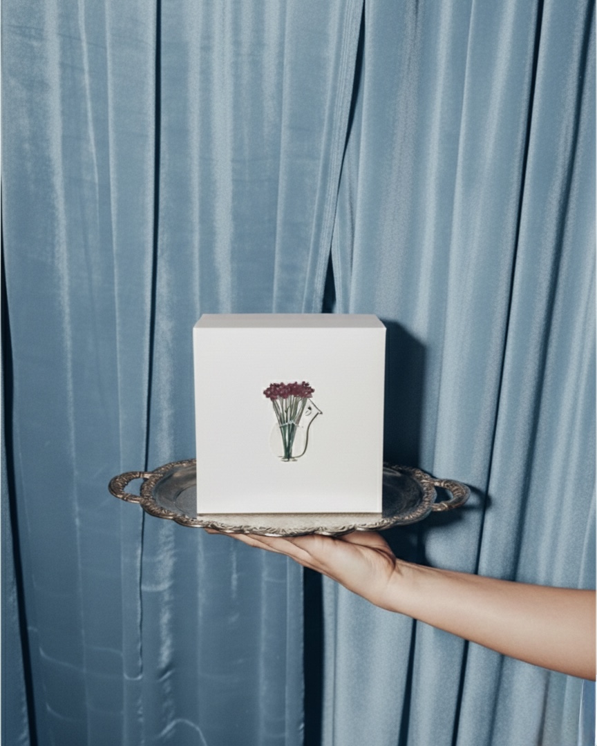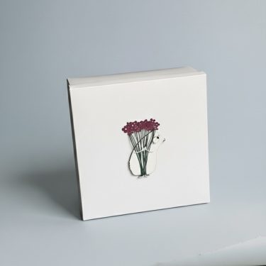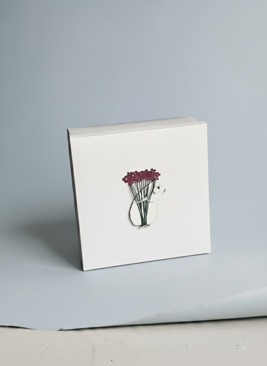 Коробка с деревянным элементом «Медведь с букетом» 20*20*10 см (белое дно)