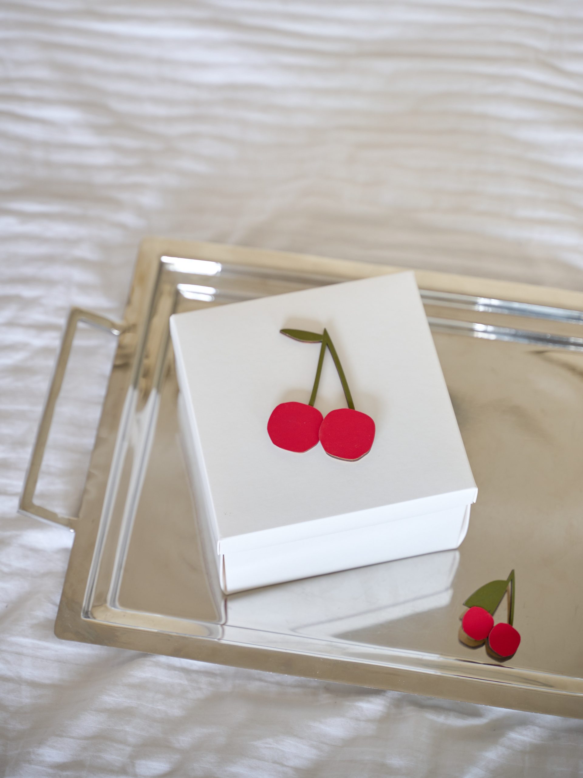 Коробка с деревянным элементом «Вишни» 20*20*10 см (белое дно)