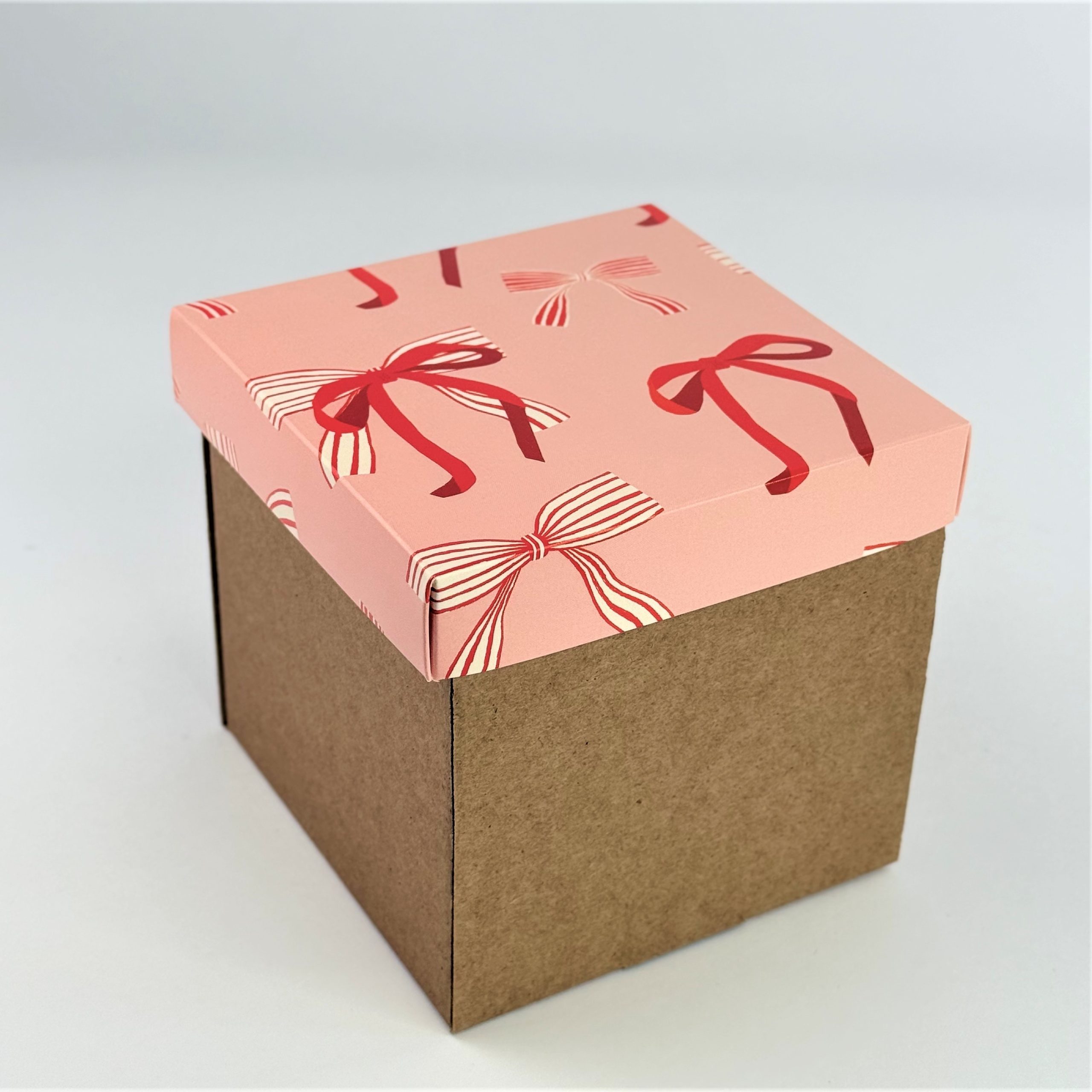 Крафт-коробка «Бантики» 20*20*20 см (крафт дно из микрогофры)