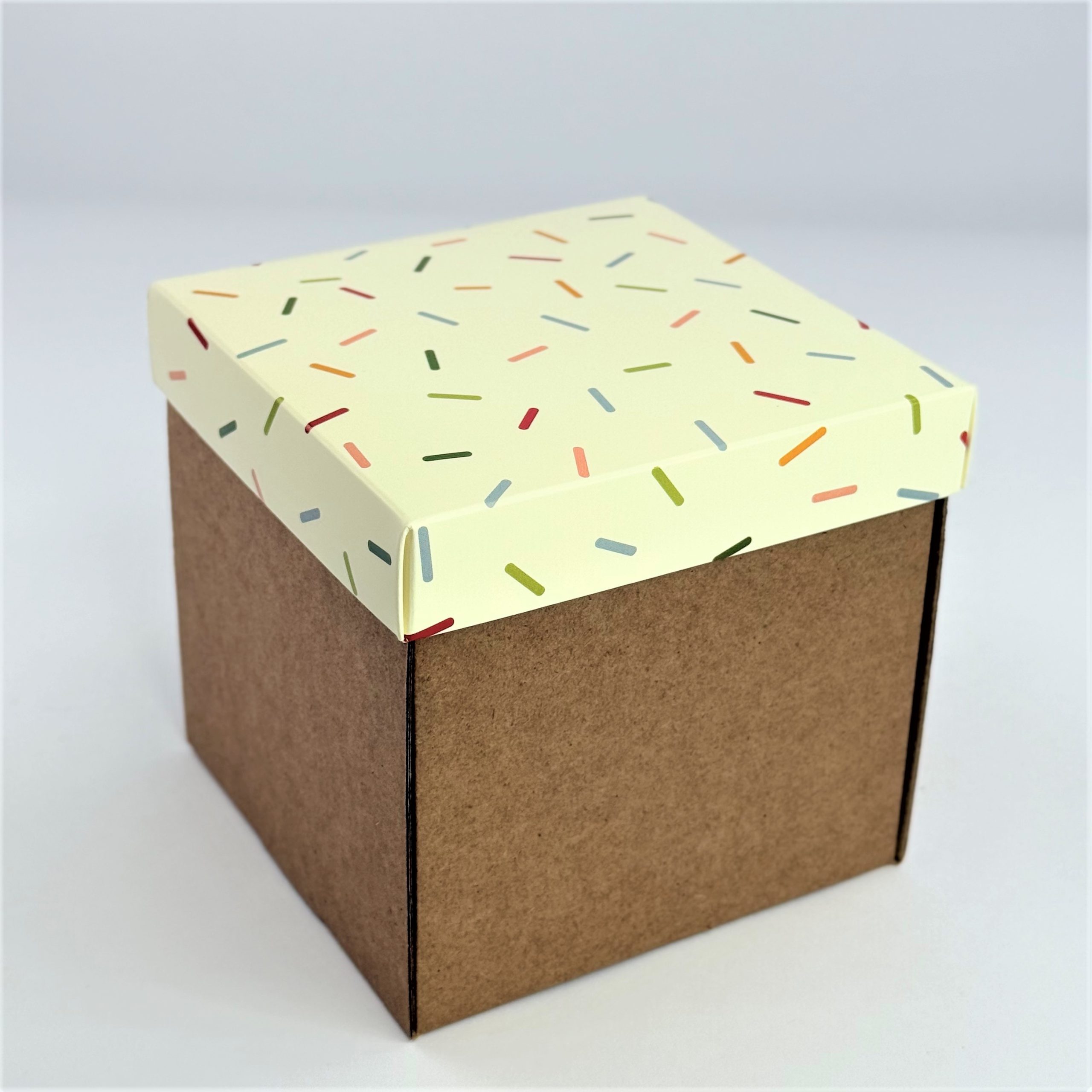 Крафт-коробка «Конфетти» 20*20*20 см (крафт дно из микрогофры)