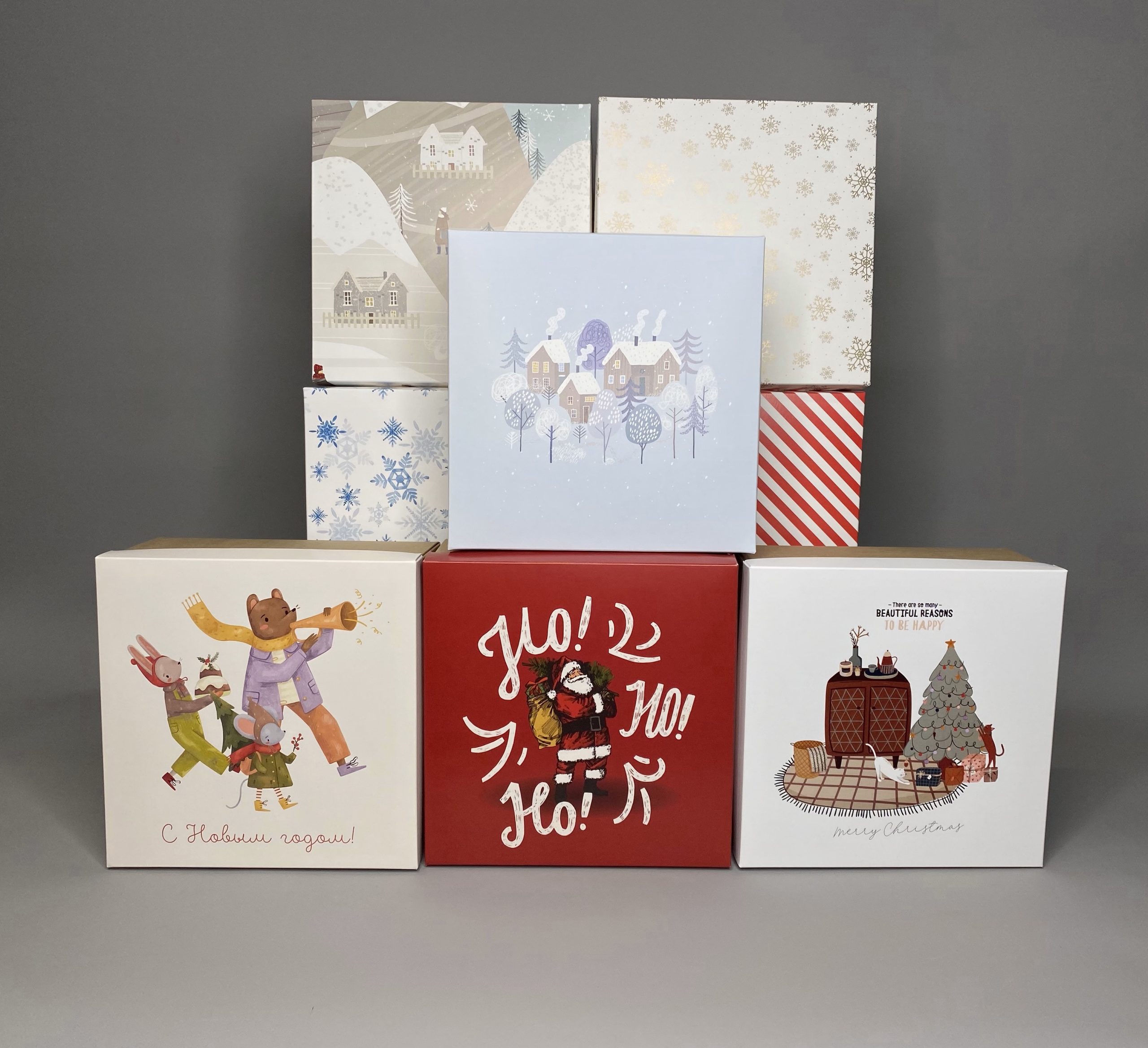 Коробка «Новогодняя» 20*20*7 см в ассортименте