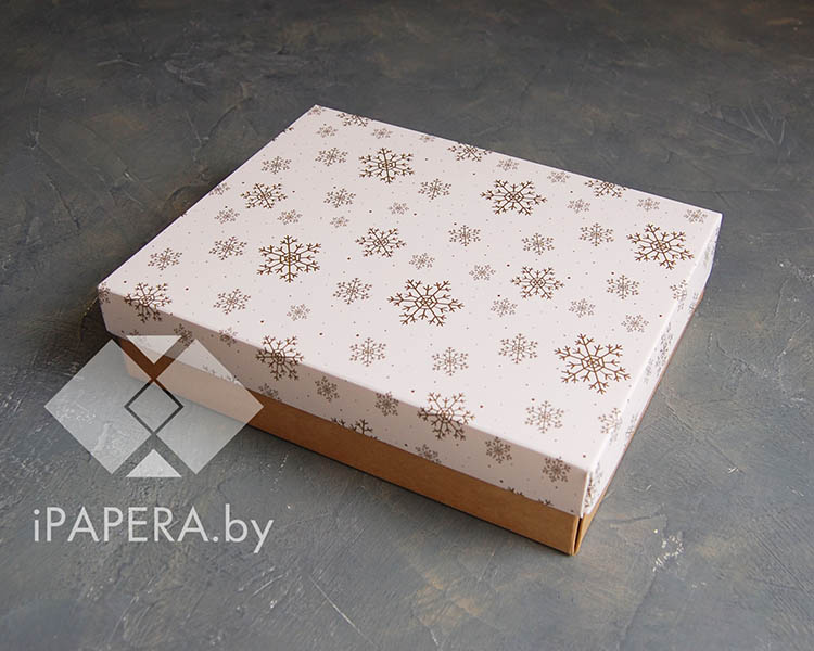 Коробка «Снежинки» 21*16,5*5 см (крафт дно)