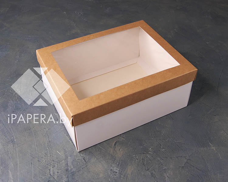 Коробка «Крафт с окном» 21*16,5*9 см (белое дно)