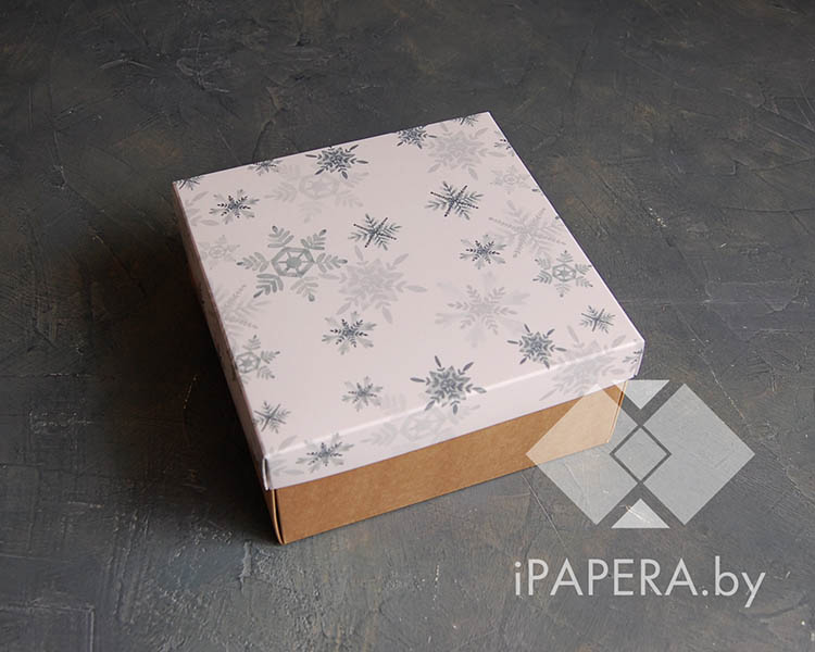 Коробка «Акварельные снежинки» 22*22*10 см (крафт дно)