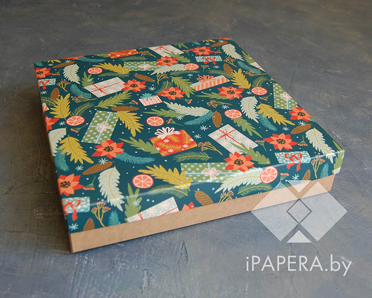 Коробка «Волшебный праздник» 25*25*5 см (крафт дно)