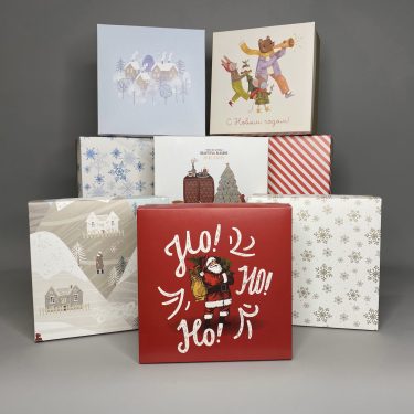 Крафт-коробка «Новогодняя» 31*31*8 см в ассортименте (дно из микрогофры)