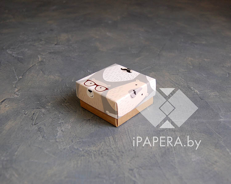 Коробка «Медведи» 5,5*5,5*3 см (крафт дно)