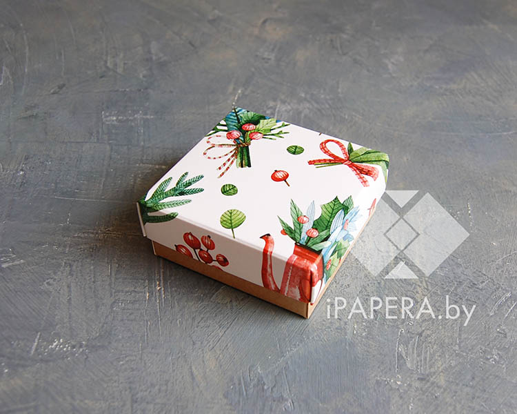 Коробка «Новогоднее настроение» 5,5*5,5*3 см (крафт дно)