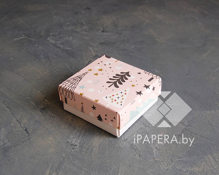 Коробка «Ёлки» 5,5*5,5*3 см (белое дно)