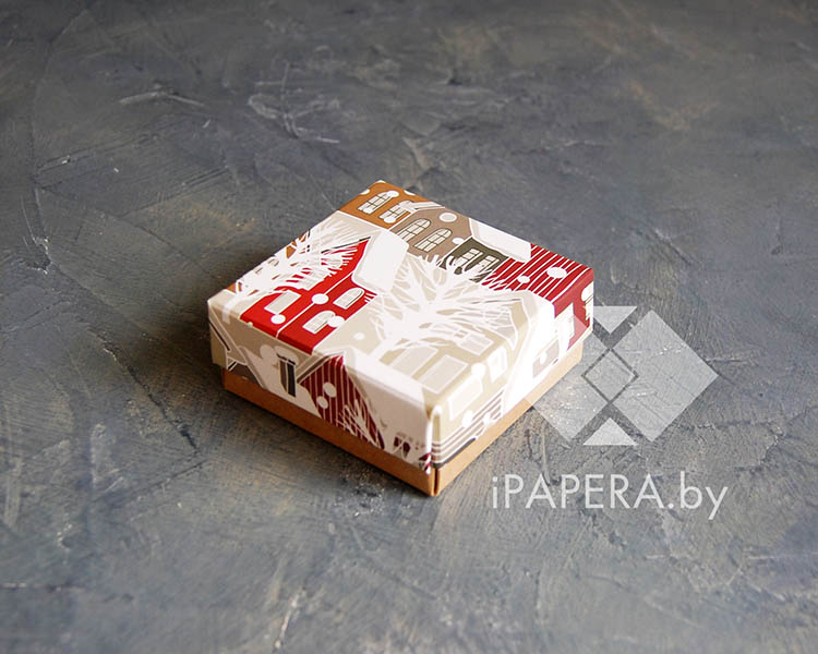 Коробка «Зимний город» 5,5*5,5*3 см (крафт дно)