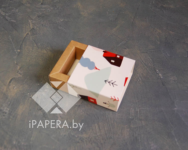 Коробка «Новогоднее настроение» 5*5*3 см с фальшбортом (крафт дно)