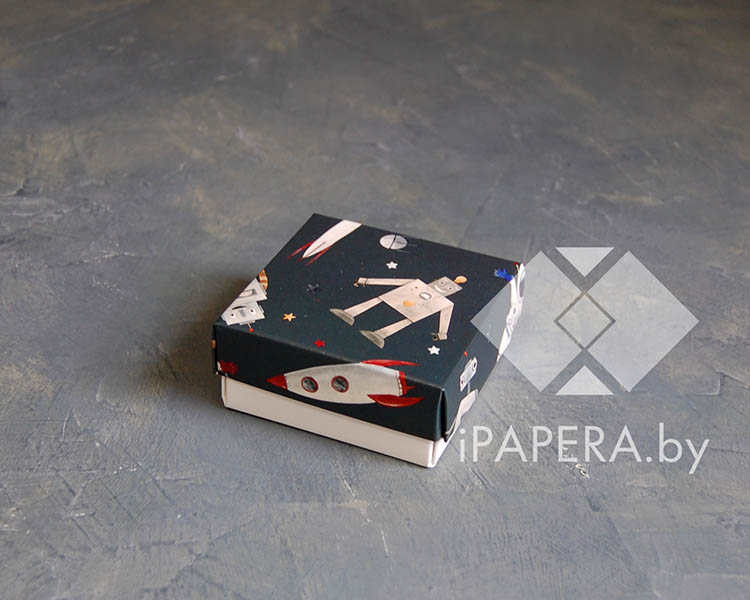 Коробка «Космос» 5*5*3 см с фальшбортом (белое дно)
