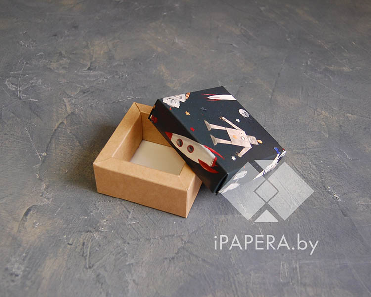 Коробка «Космос» 5*5*3 см с фальшбортом (крафт дно)