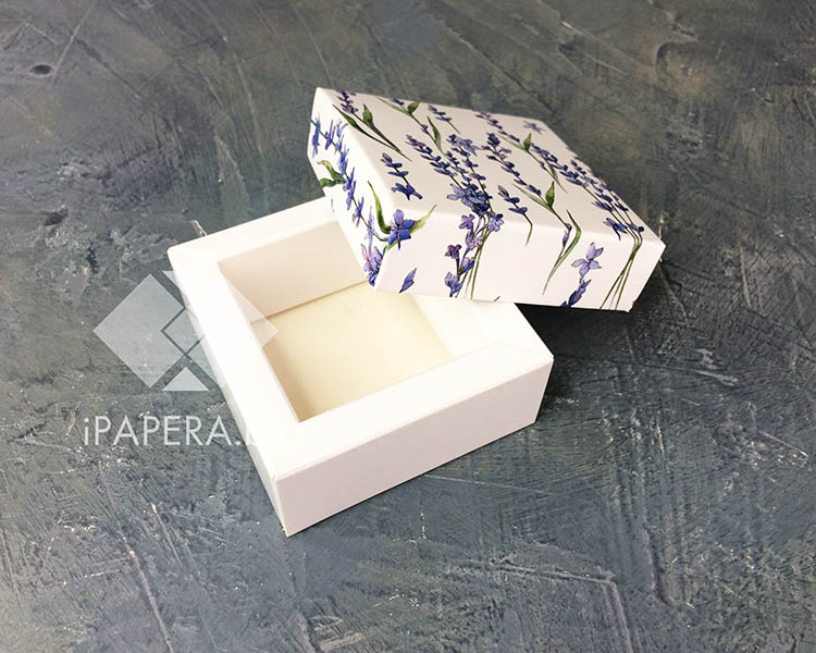Коробка «Лаванда» 5*5*3 см с фальшбортом (белое дно)