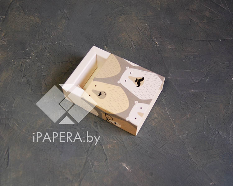 Коробка-пенал «Медведи» 5*5*3 см с фальшбортом (белое дно)