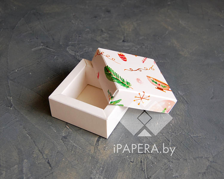 Коробка «Акварельные снежинки» 5*5*3 см с фальшбортом (белое дно)
