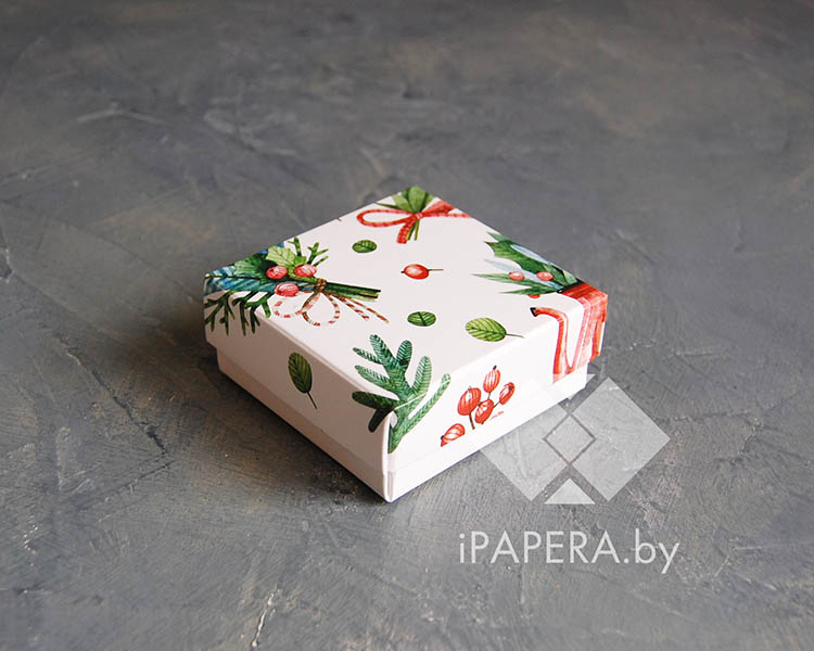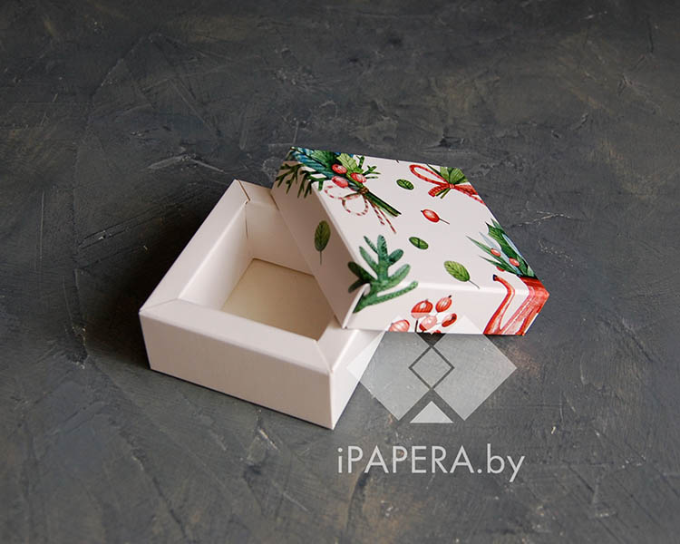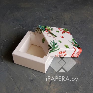 Коробка «Новогоднее настроение» 5*5*3 см с фальшбортом (белое дно)