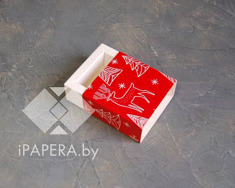 Коробка-пенал «Олени» 5*5*3 см с фальшбортом (белое дно)
