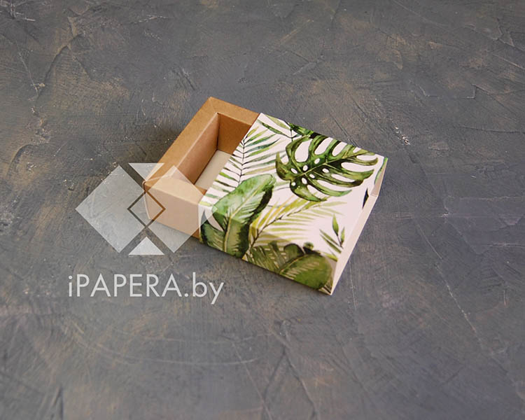 Коробка-пенал «Тропики» 5*5*3 см с фальшбортом (крафт дно)